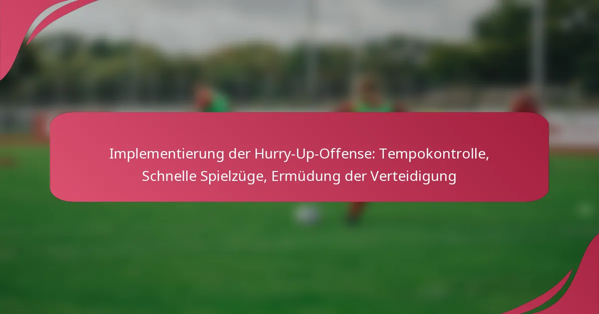 Die Hurry-Up-Offense ist eine dynamische Strategie im Football, die ein schnelles Spieltempo betont, um die Verteidigung unter Druck zu setzen. Durch die Minimierung der Zeit zwischen den Spielzügen können Teams defensive Schwächen ausnutzen und Ermüdung hervorrufen, was letztendlich vorteilhafte Scoring-Möglichkeiten schafft. Eine effektive Umsetzung erfordert schnelles Spielaufrufen und effiziente Kommunikation, sodass die Offense die Kontrolle über das Tempo des Spiels behalten kann.
